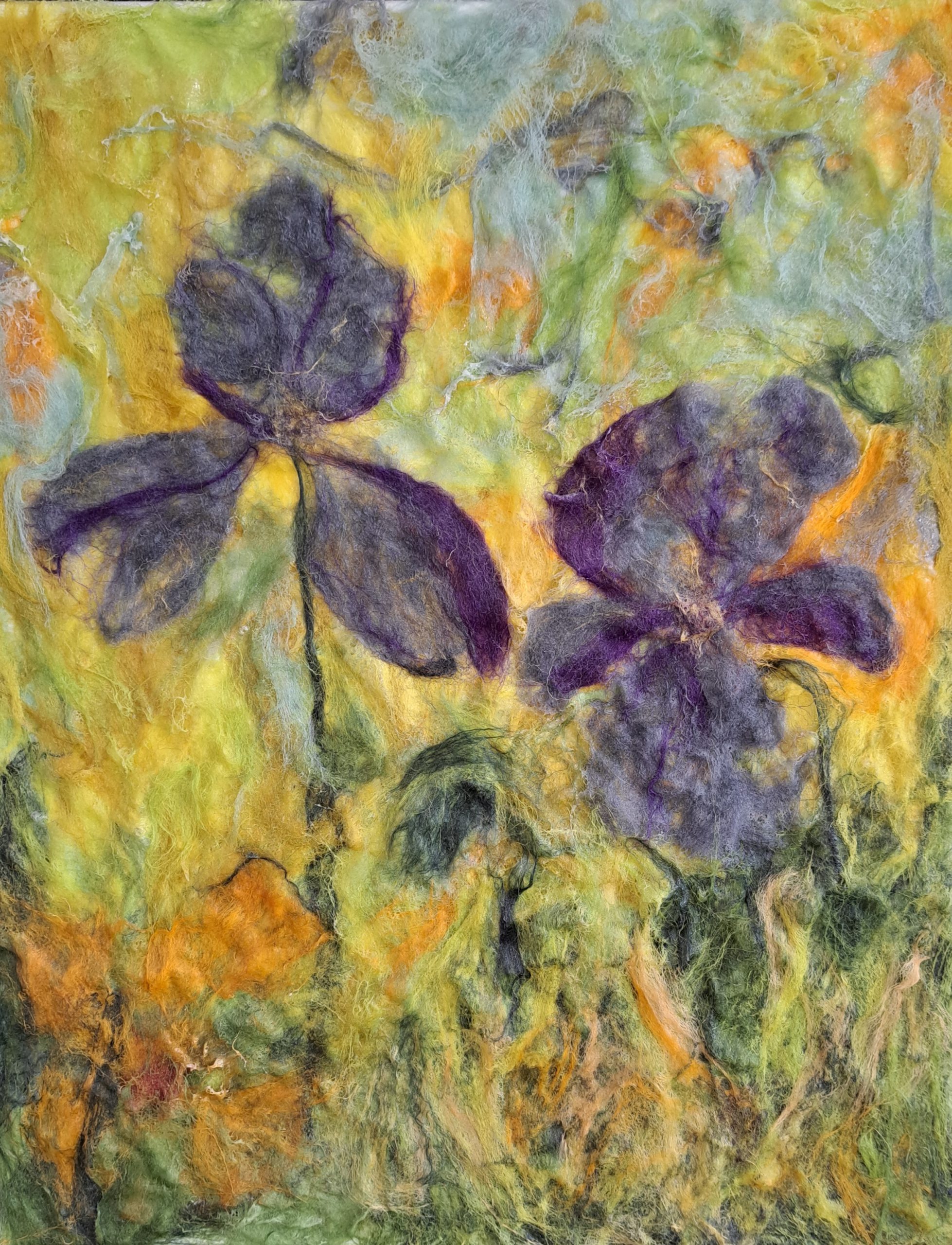 Daar, midden in de natuur, vindt zij haar inspiratie. Haar schilderijen ontstaan door wolvezels